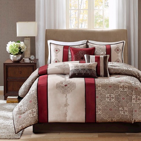 Red Comforter Sets Queen - Amazon Com Madison Park Palmer 7 Piece Comforter Set Red Queen Pieced Microsuede Includes 1 Comforter 3 Decorative Pillows 1 Bed Skirt 2 Shams Home Kitchen : The serenity comforter and sheet set has a variety of neutral tones to give your bedroom a simple sense of contemporary style.